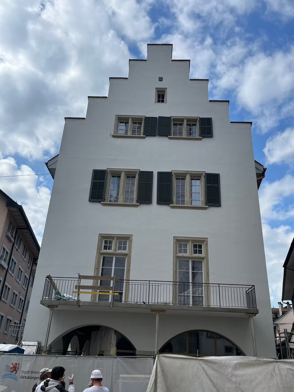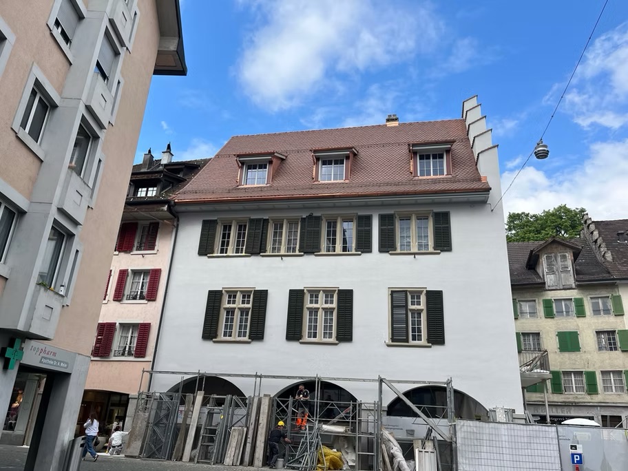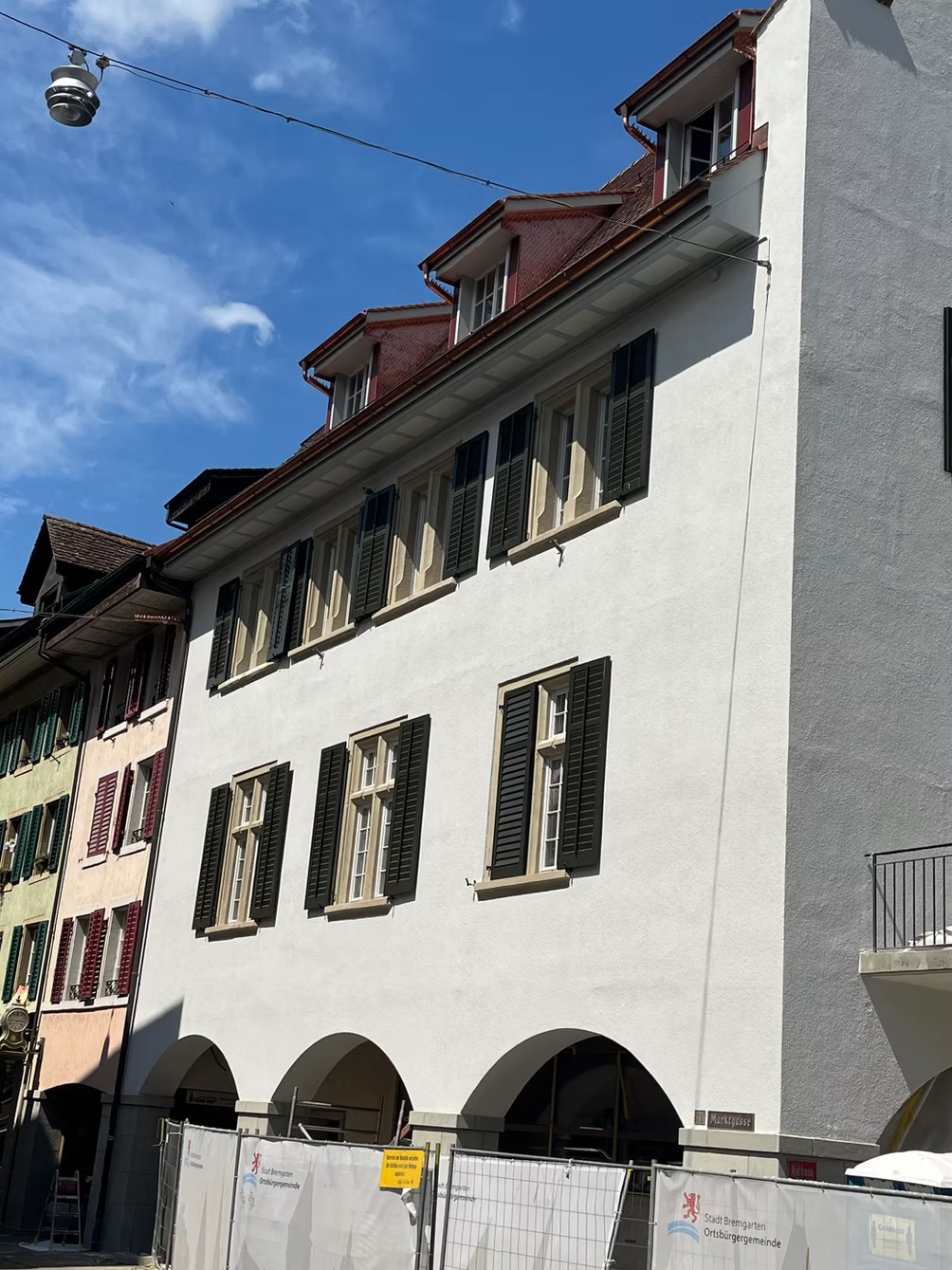 An einer geschützten Altstadtliegenschaft in Bremgarten führten wir anspruchsvolle Arbeiten unter Einbezug der Denkmalpflege aus. Dazu gehörten das Ablaugen der Einfassungen, die Nachbildung einer Naturstein-Imitation sowie der Neuanstrich sämtlicher Holzwerke, alt und neu. Abschliessend erhielten alle Fassadenflächen einen sorgfältigen Neuanstrich, der den historischen Charakter bewahrt und zugleich den langfristigen Werterhalt sicherstellt.