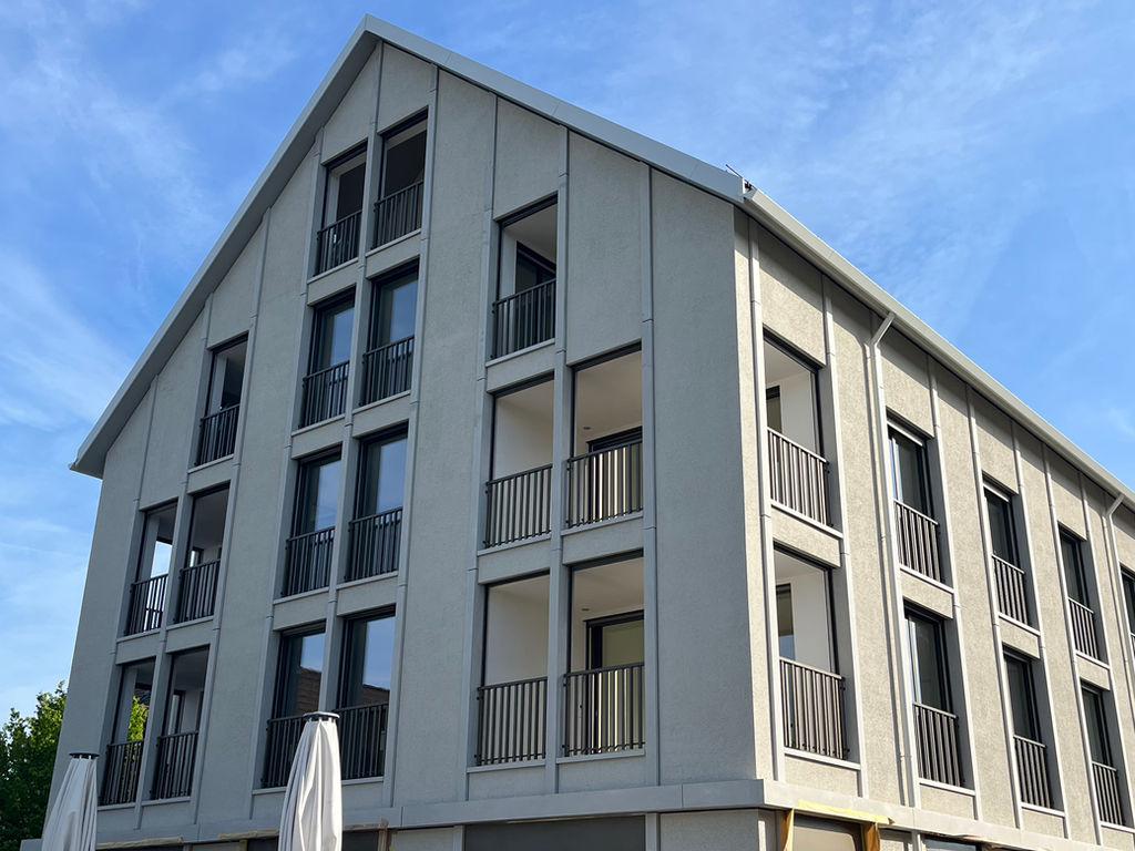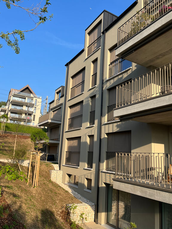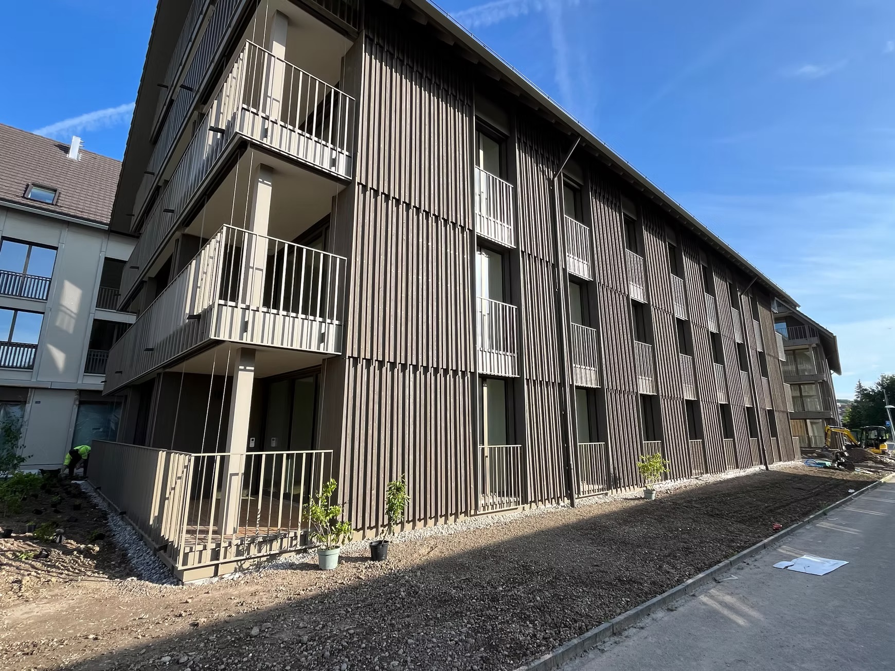 Beim Neubau von vier Mehrfamilienhäusern in Niederhasli führten wir sämtliche Anstriche auf den Balkonuntersichten aus. Ergänzend realisierten wir Lackierarbeiten an den Storenblechen mit einer edlen Perlglimmerfarbe. Das Ergebnis verleiht den Gebäuden ein hochwertiges, modernes Erscheinungsbild und sorgt zugleich für dauerhaften Schutz der Oberflächen.